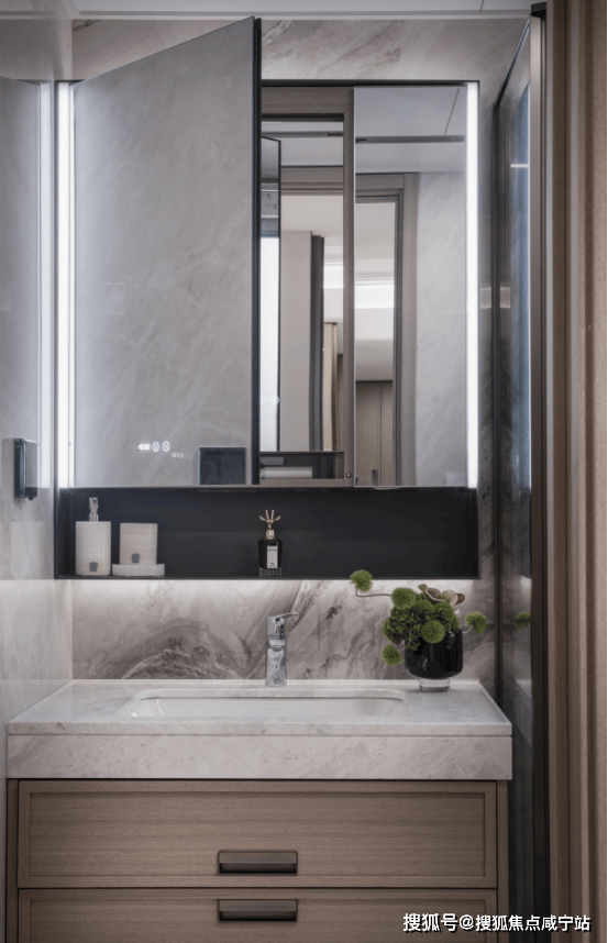 背后主墙面采用岩板设计,经久耐用,内部还收纳细节还预留4孔电源,电动牙刷★ღ✿ღ、卷发棒等吹风机收纳孔★ღ✿ღ、洗脸巾抽取孔.
